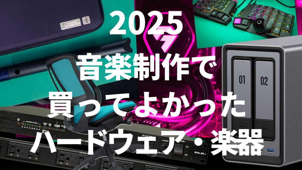 こんばんは。作曲家のこおろぎです。 2025年、音楽制作において買ってよかったハードウェアと楽器をザクっと紹介していきます。 今年はスピーカーやオーディオI/Oなど、音楽制作そのものに繋がるものは少なく、チェアやNASな … 続きを読む 音楽制作で買ってよかったハードウェア・楽器 2025年【DTM】