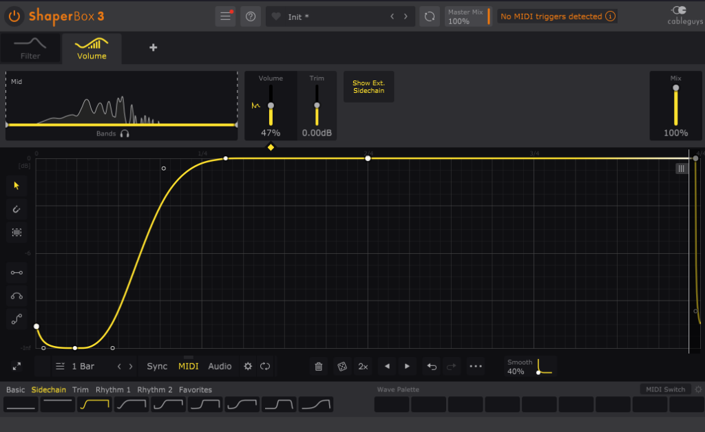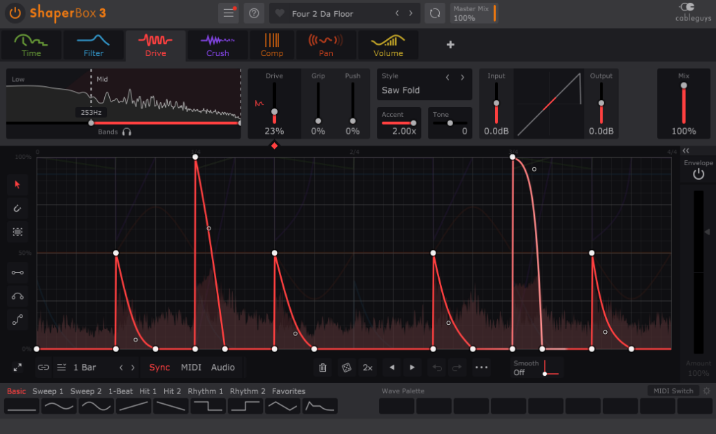 サイドチェイン、グリッチ、スタッター、フィルター、ディストーションなど、複雑なリズミカル・エフェクトを手軽に作成できます。GUIがわかりやすい。